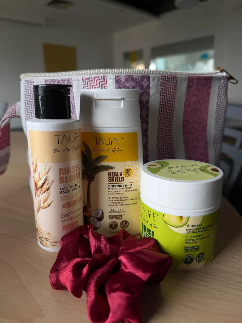 It includes our Oat milk face wash to gently cleanse without drying, Avocado milk face mask to deeply nourish and hydrate, and Coconut milk sunscreen to protect and keep your skin soft and smooth.