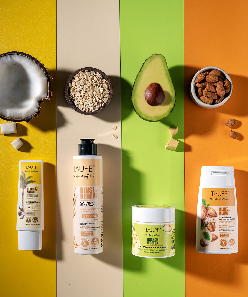 At taupe, we harness the power of vegan milk and probiotics in dermatologist-tested, safe, and highly effective skincare products. Our microbiome-friendly approach strengthens and harmonizes your skin, promoting health, balance, and a radiant glow.