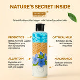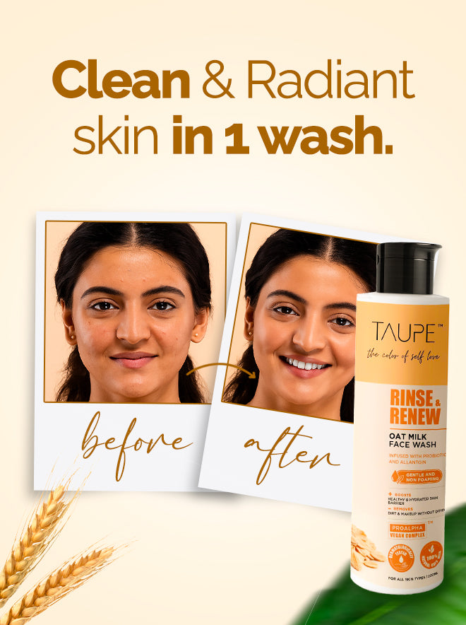 Our face wash offers relief for acne, harnessing the calming effects of oat milk to reduce inflammation and leveraging probiotics to foster a balanced skin microbiome, reducing acne-causing bacteria. This aligns with our brand's inclusive philosophy, catering to a wide range of skin concerns and needs.